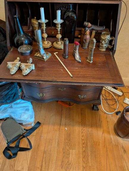 LOT 183 - Contents of Drop Leaf Serpentine Desk