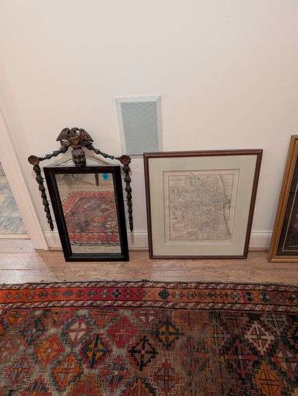 LOT 390 - Antique Framed Mirror & Map of Chicago