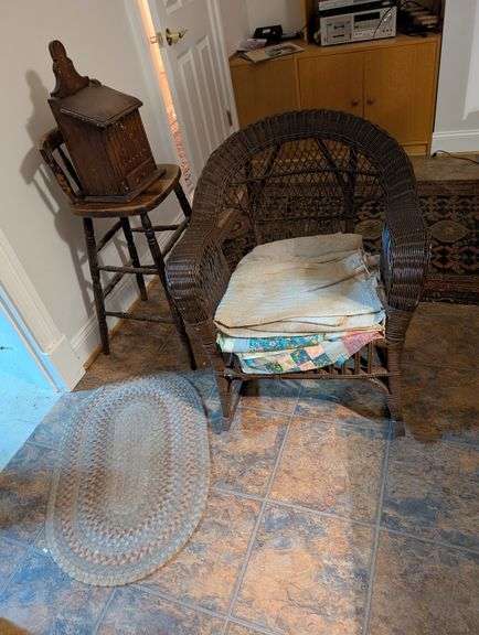 LOT 416 - Salt Box, Vintage Wicker Rocker & Bar Stool